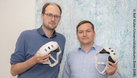 (from left): Prof. Björn Krüger, Head of the "Personalized Digital Health and Telemedicine" research group at the UKB and PD Dr. Kristian Welle, Senior Consultant at the UKB's Orthopaedics and Trauma Surgery Clinic, are leading the project at the UKB.